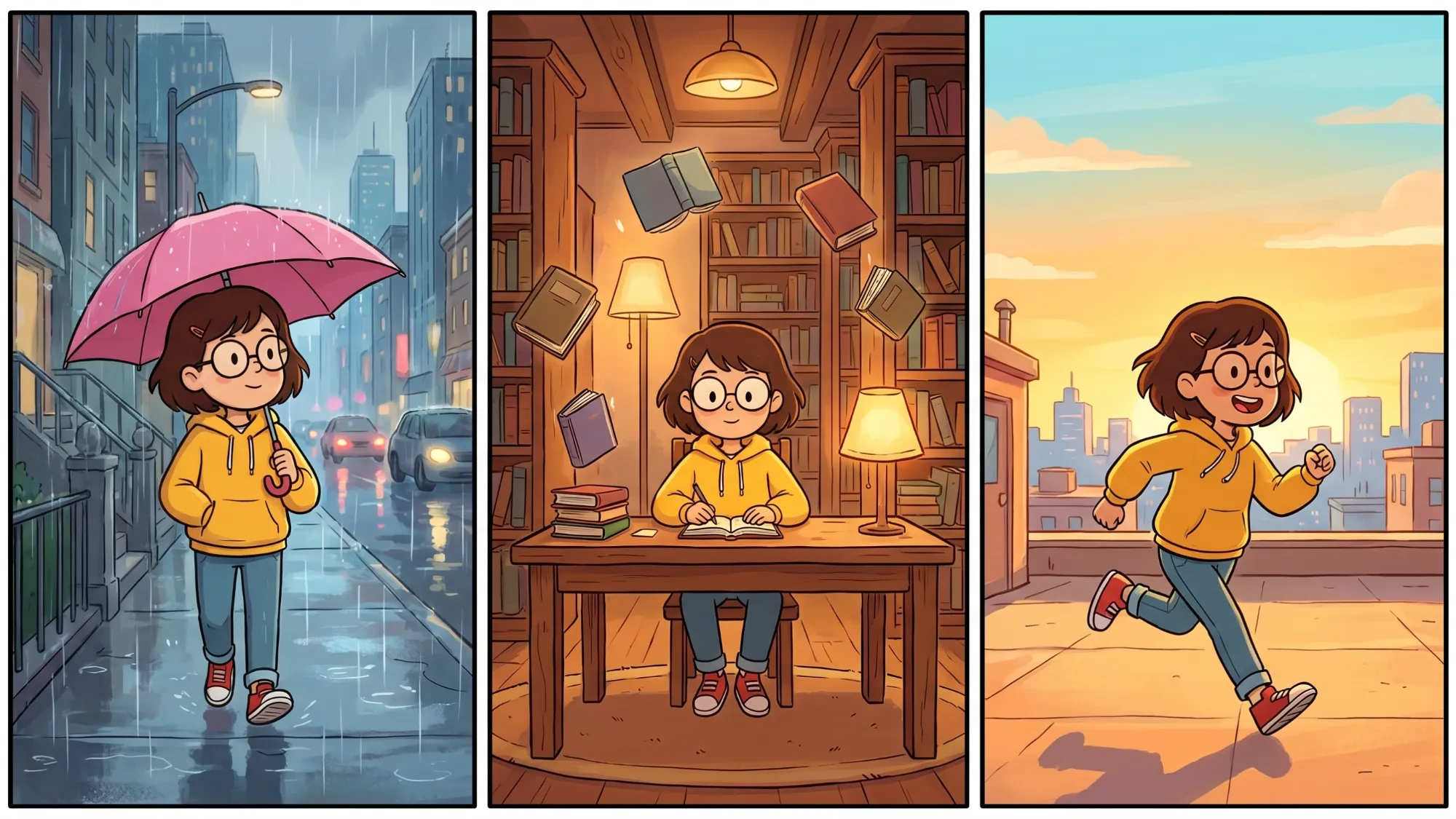Design your cartoon characters once and reuse them throughout your entire video with total visual consistency - same proportions, same colors, same style, scene after scene. Perfect for cartoon series, branded content, and storytelling where character continuity matters.